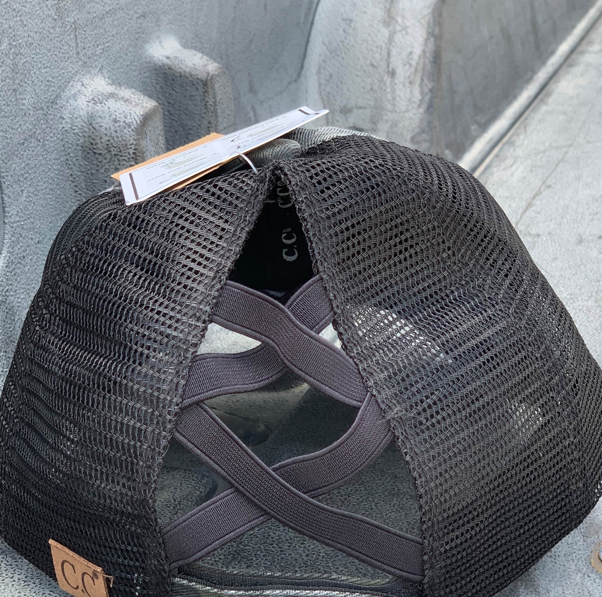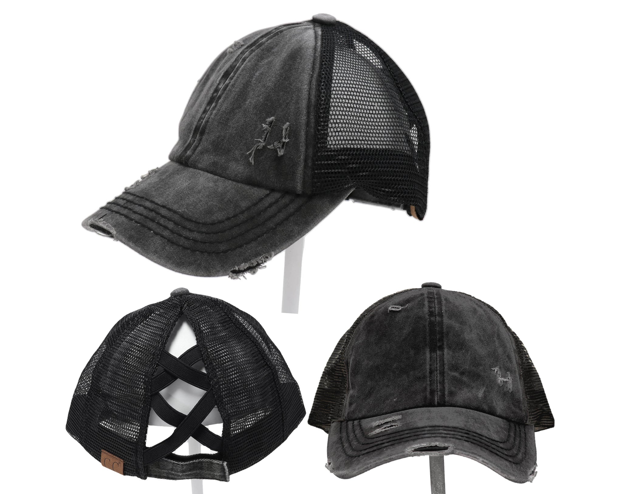 Authentic Black/Black CC Beanie CrissCross High Ponytail Trucker Hat Lavado desgastado Denim