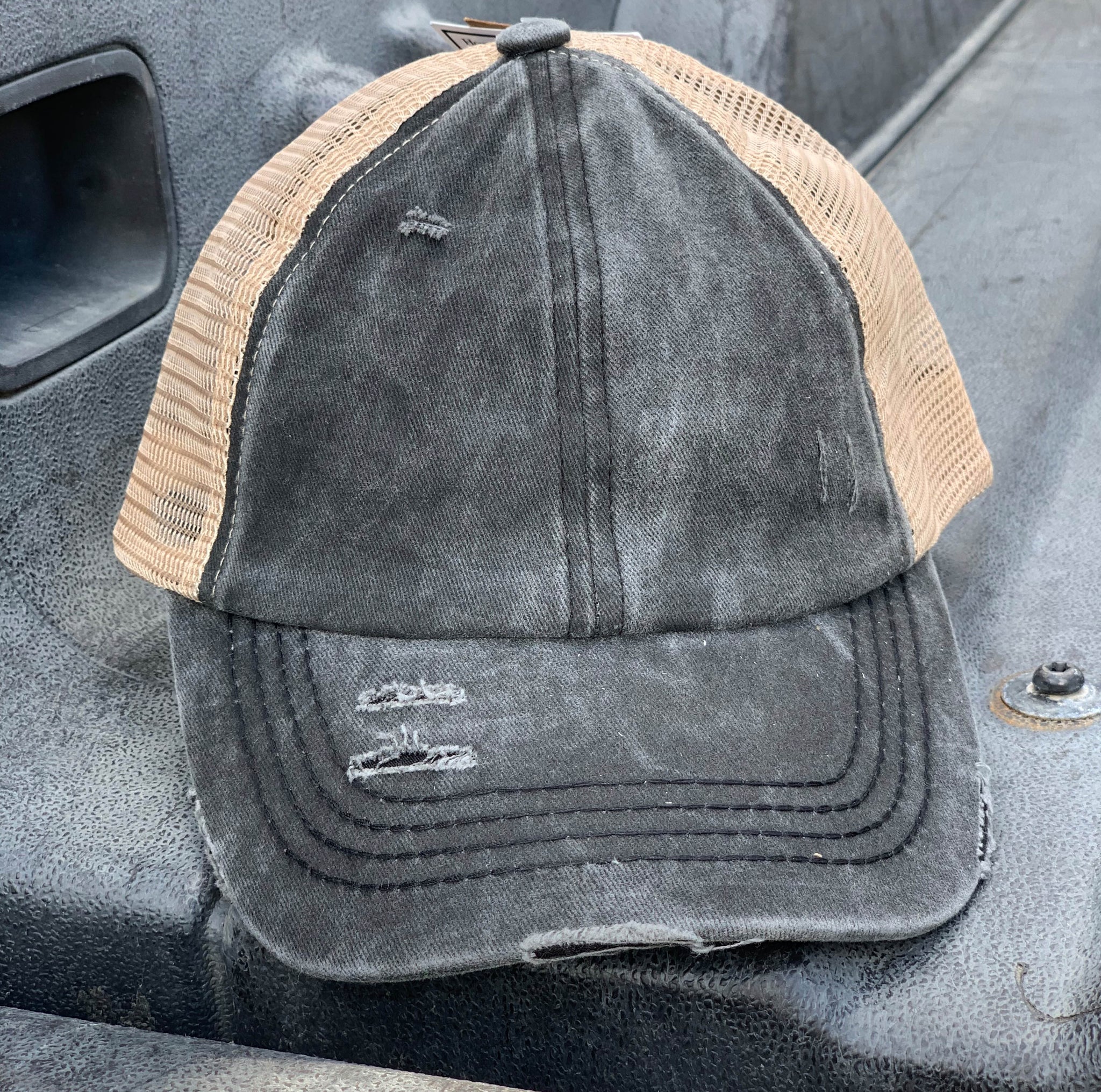 Authentic Black/Beige CC Beanie CrissCross High Ponytail Trucker Hat Lavado desgastado Denim
