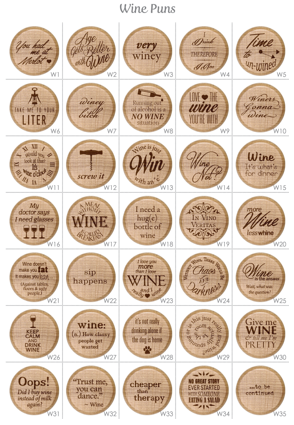 Funny Pun Wine Stoppers - Bottle corks are reusable t-cork style laser engraved with personalized information. These wine toppers with hilarious sayings are great hostess gifts. Funny wine quotes are awesome last minute gifts - keep a handful in a drawer and just run to the liquor store to pair with a bottle for a thoughtful, if forgotten, birthday gift.